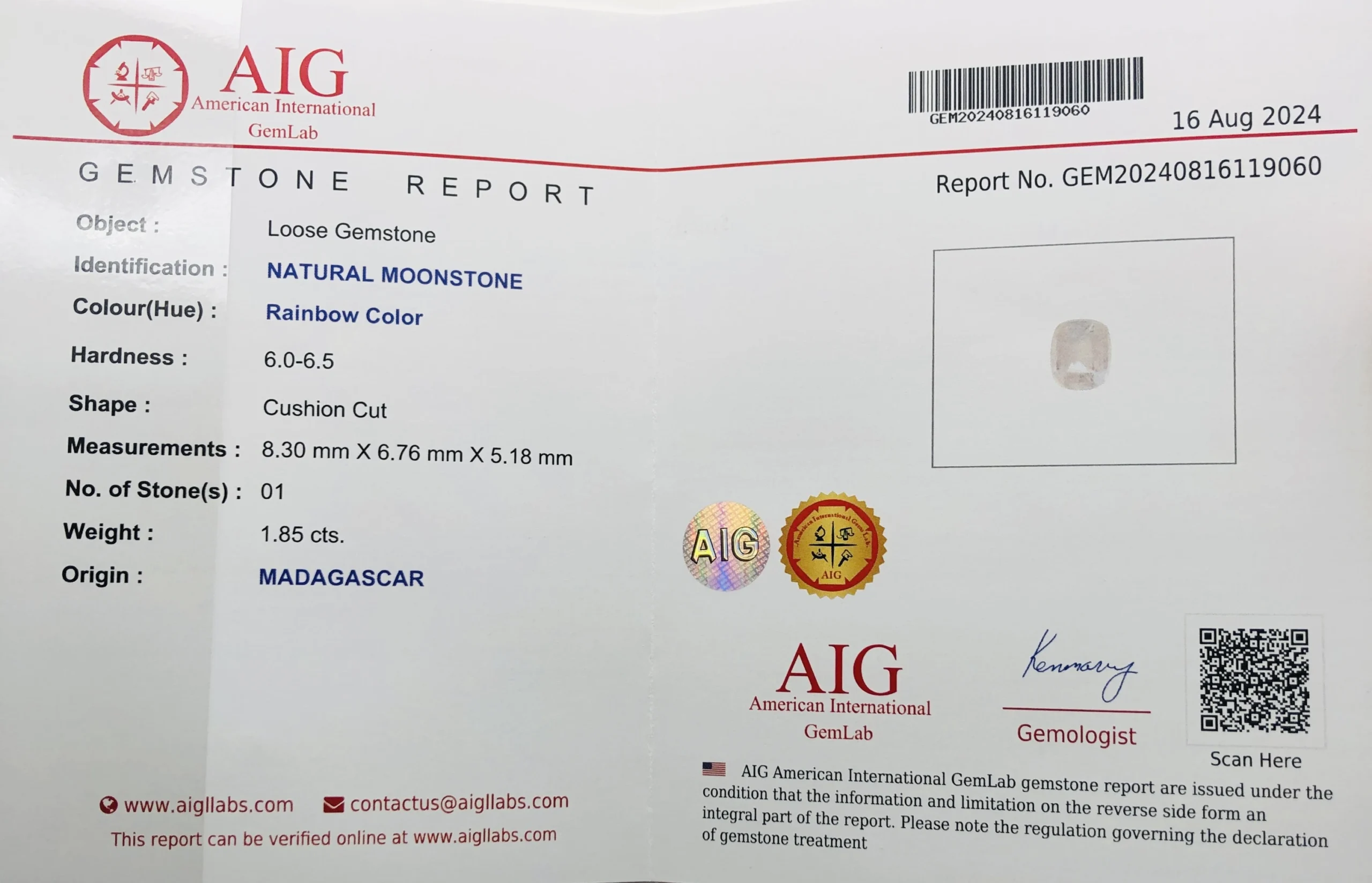 Certification: An AIG Gemstone Report verifying natural origin, unheated status, and premium quality (see sample report in images).